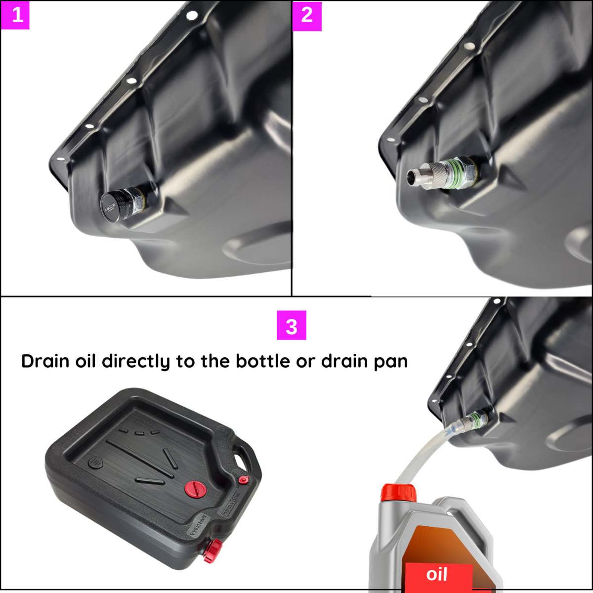 This oil drain valve replaces the old plug with simple, permanent installation. It eliminates messy hands, tools, and messes.