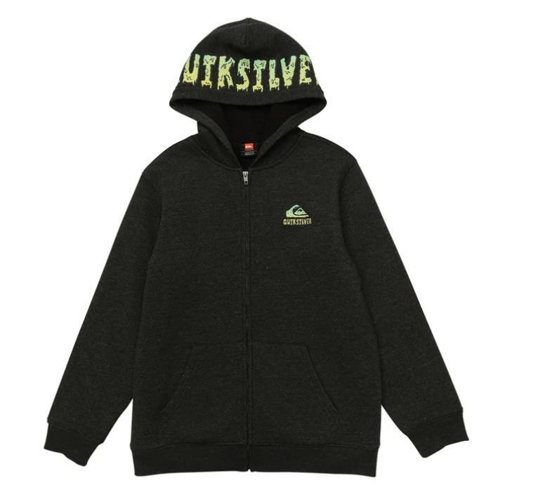 Quiksilver Boys Girls Hoodie Black Full Zip Plush Lined Active Long Sleeves