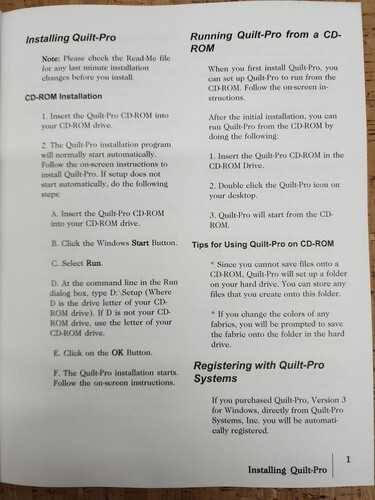 - Quilt Pro Systems Version 4 Users Guide Workbook and CD 2001