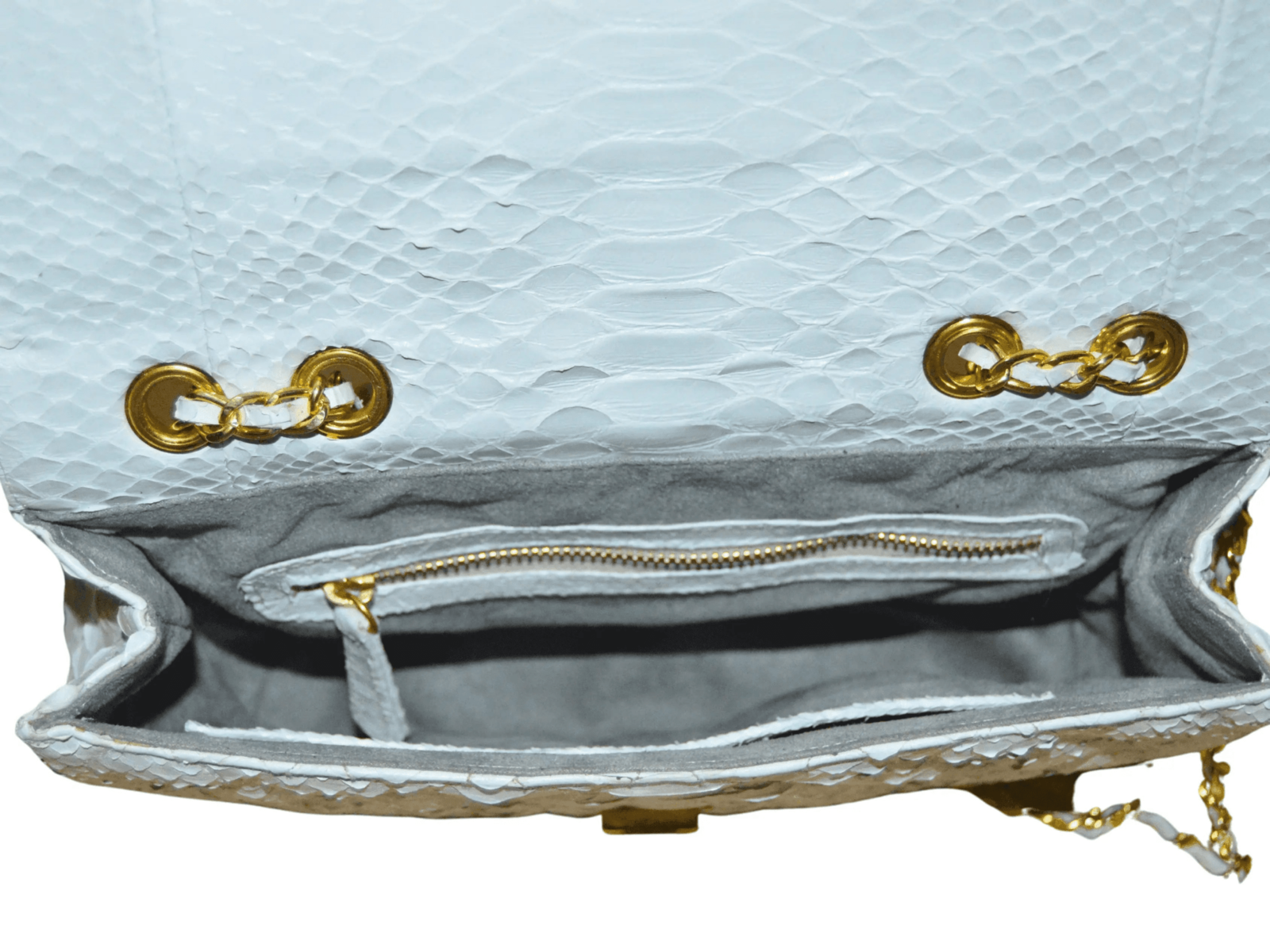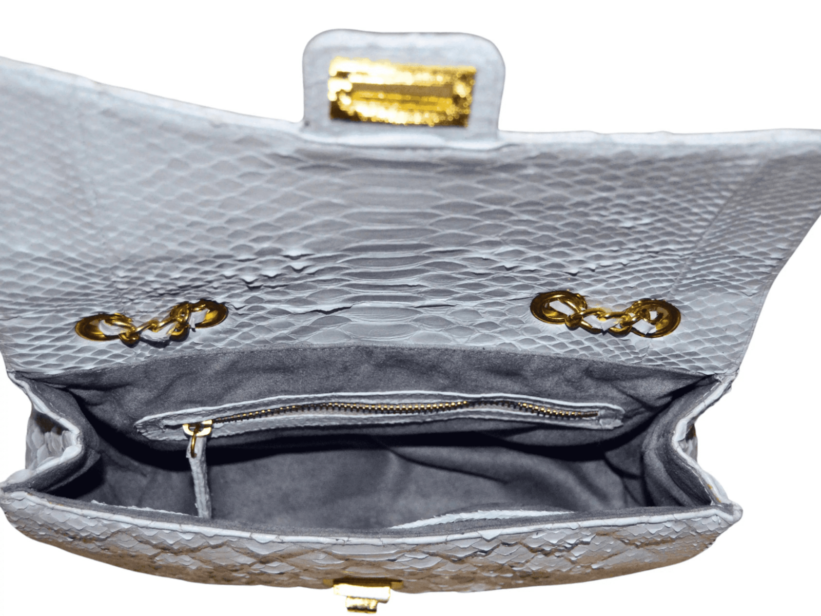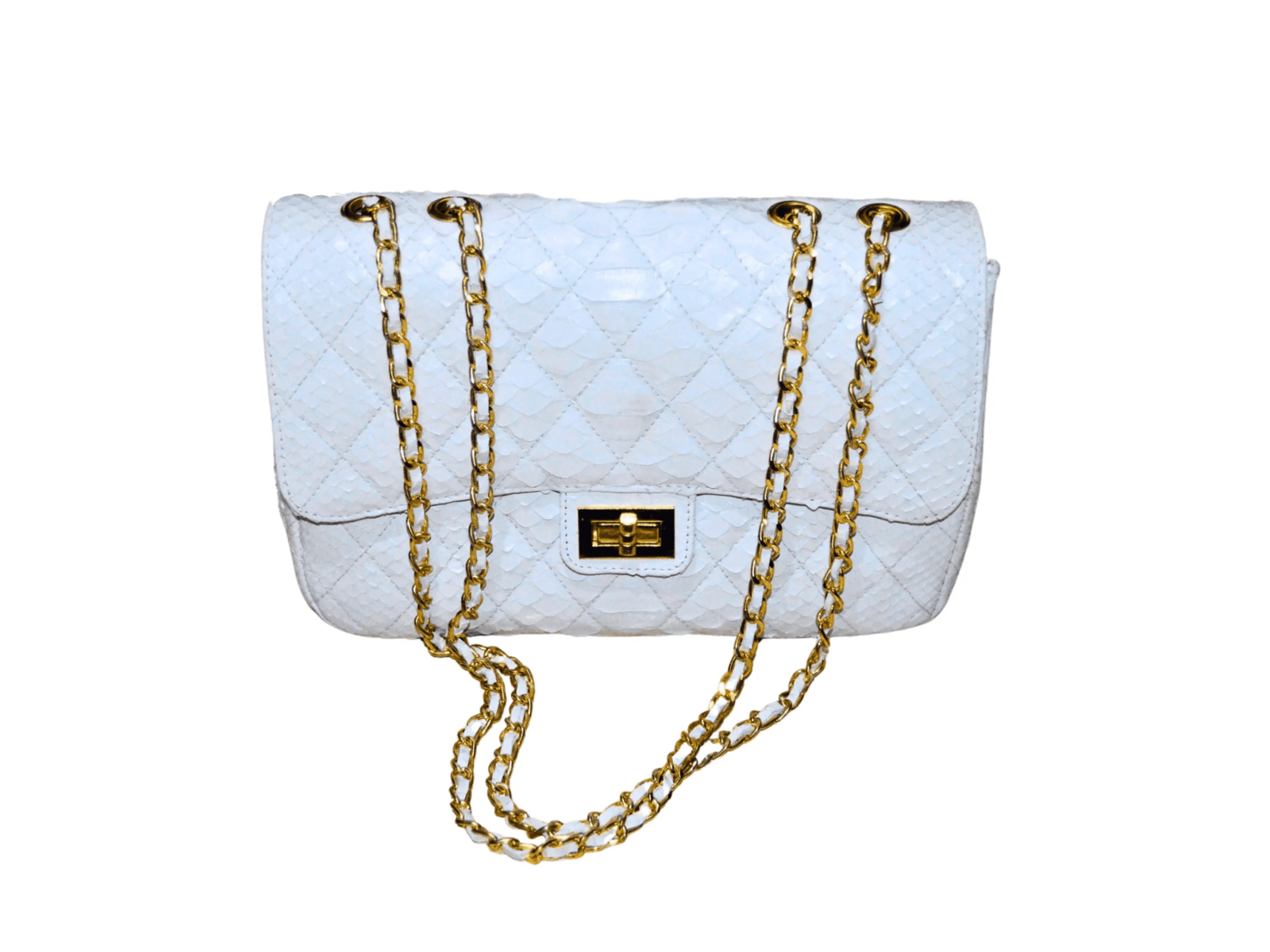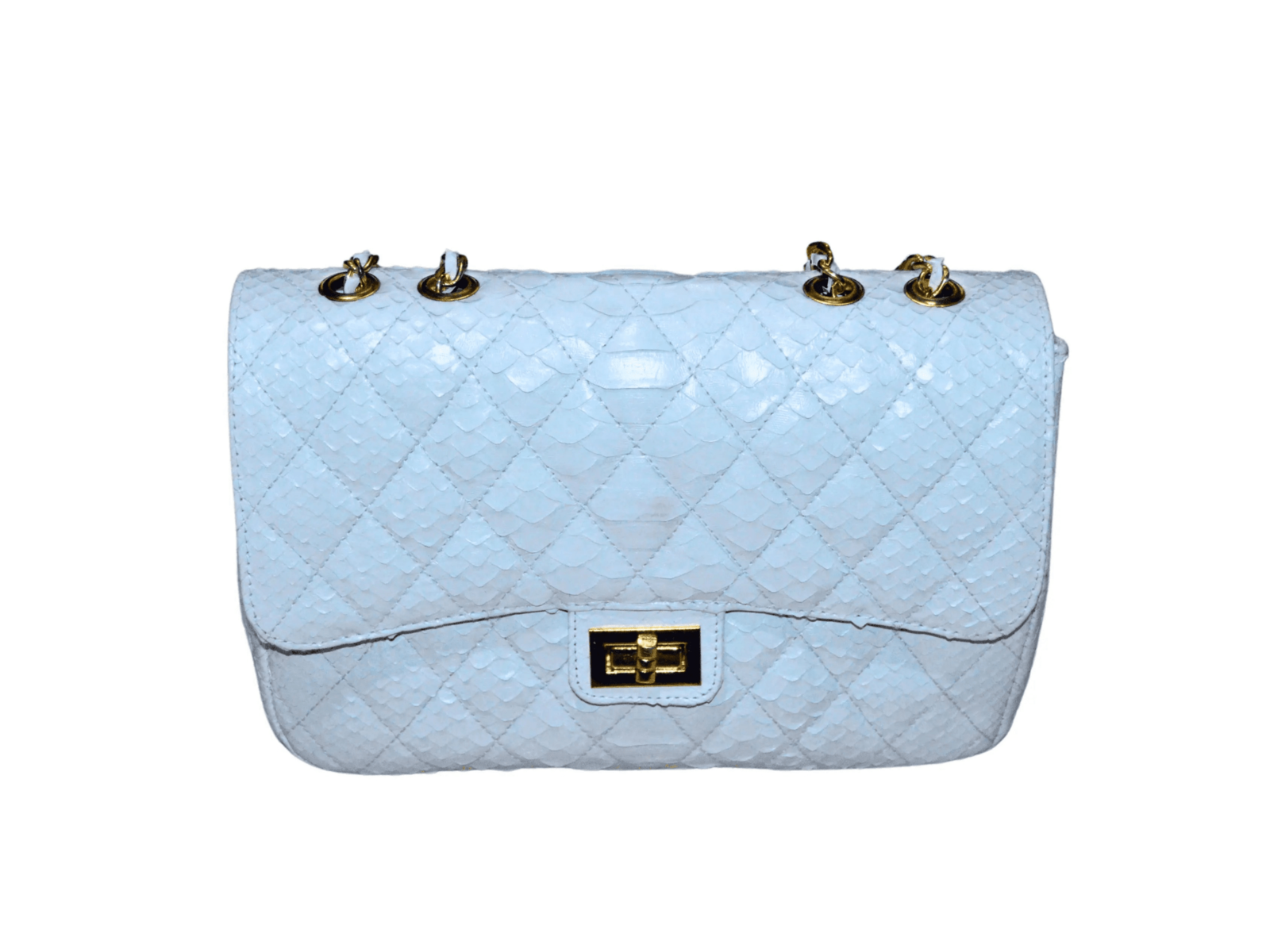The Quilt Snakeskin Flap Bag is the perfect accessory for adding a refined and sophisticated flair to any look. Its quilted snakeskin material is incredibly durable and water-resistant, making it ideal to take with you wherever you go. Enjoy peace of mind knowing that you'll have a stylish accessory that also lasts.