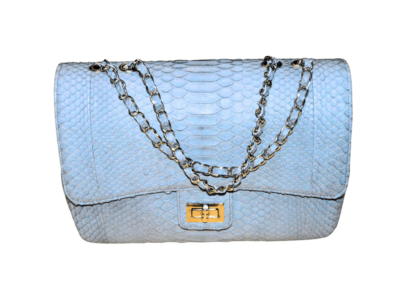STYLE - A simple design of snakeskin shoulder bag with interlocking turn-lock fastening and chain leather strap.