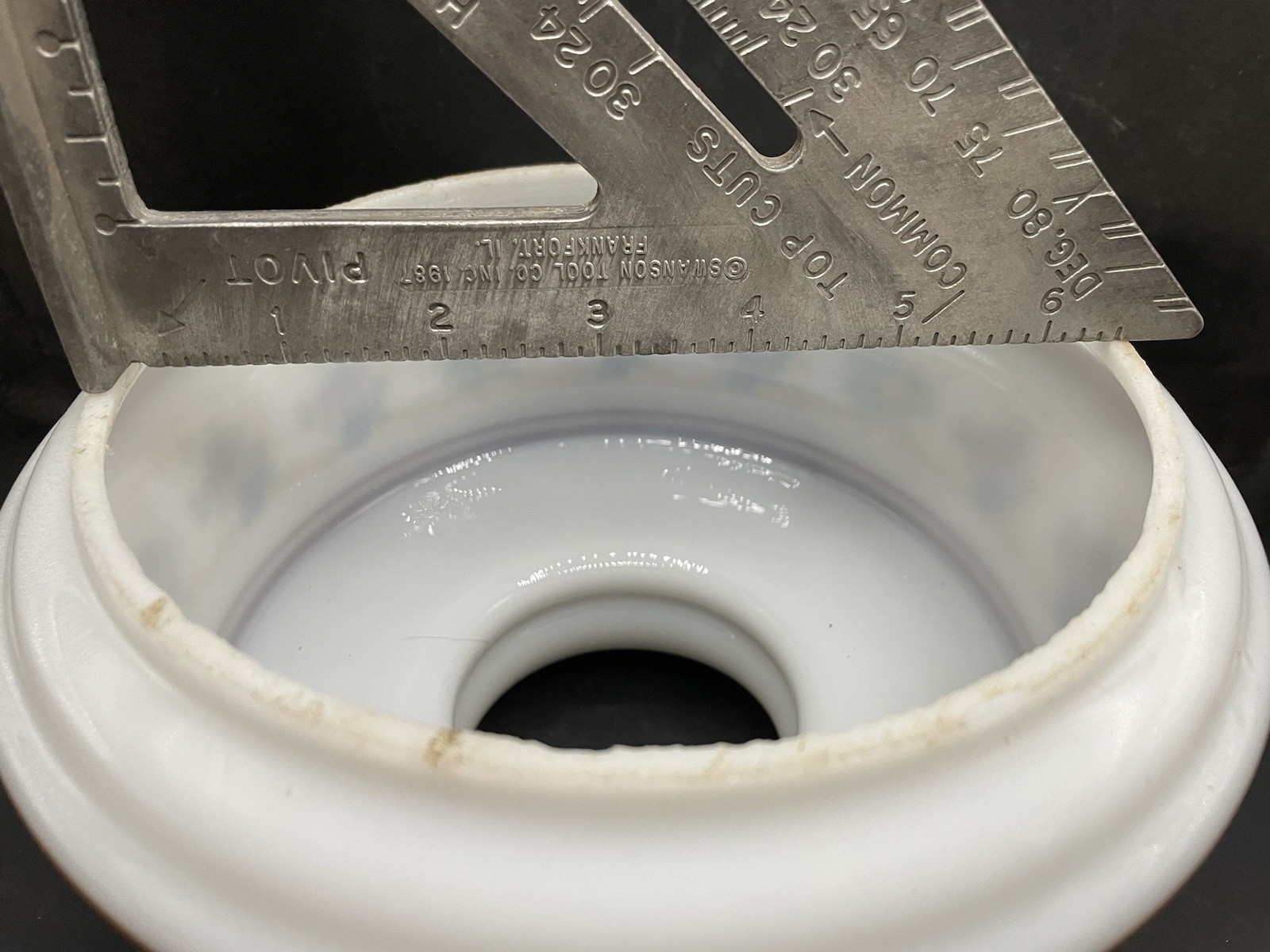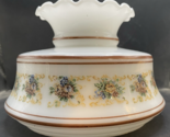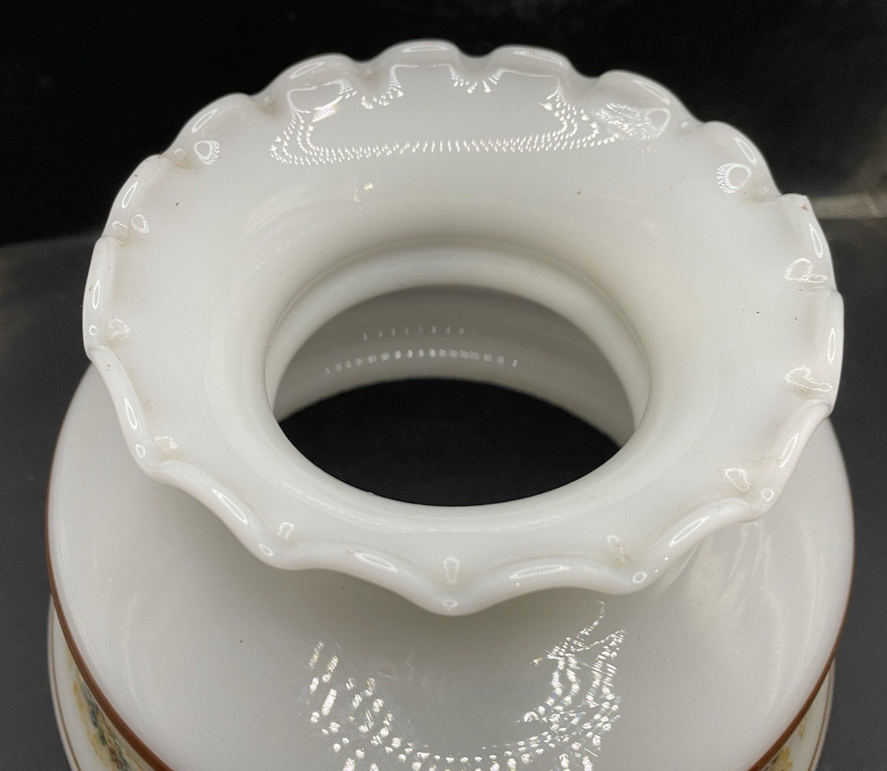 The Quoizel Abigail Adams Petit Point Brown 6.75" Fitter Hurricane Lamp Shade is a vintage glass shade from the 1970s, featuring a classic brown color and intricate Petit Point design. This original lamp shade is perfect for adding a touch of retro style to your home decor. Made by the reputable brand Quoizel, this lamp shade is a timeless piece that will complement any vintage or traditional lighting fixture.