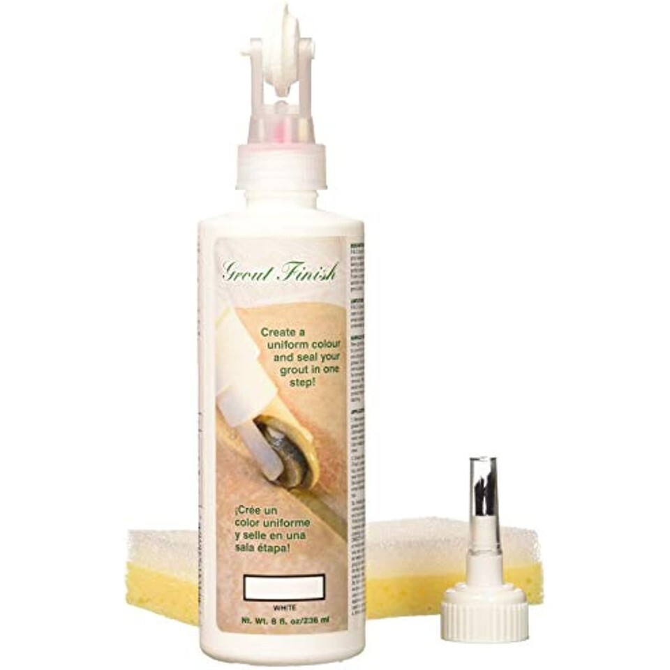 Providing a long lasting seal while achieving perfect color uniformity, compatible with either sanded or un-sanded cement grout joint, can also be used on epoxy grouts, use on Showers, countertops, backsplashes floors., includes 8 oz bottle of grout finish, wheel applicator, brush applicator, scrub pad instructions, cover approximately coverage 50-300 sift.