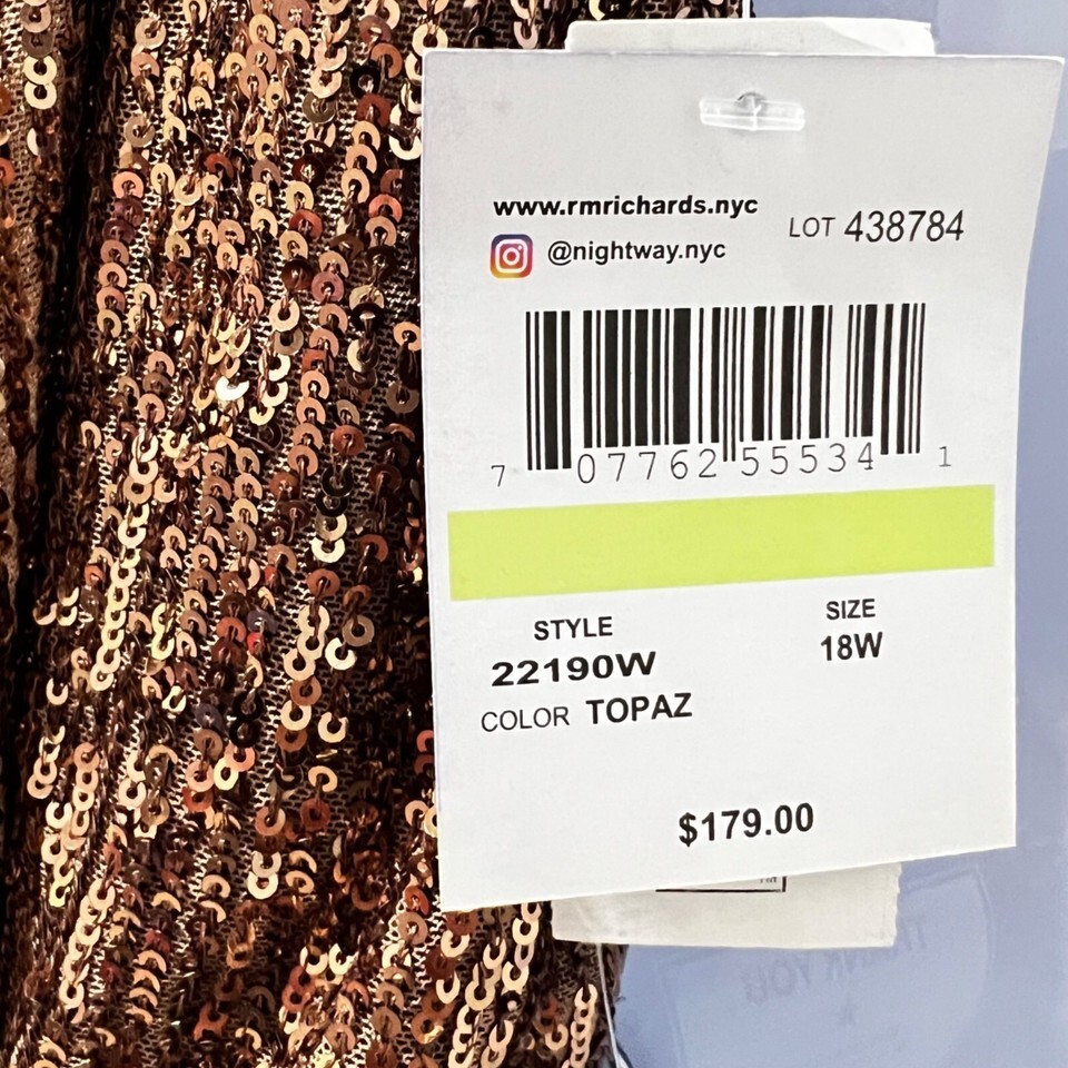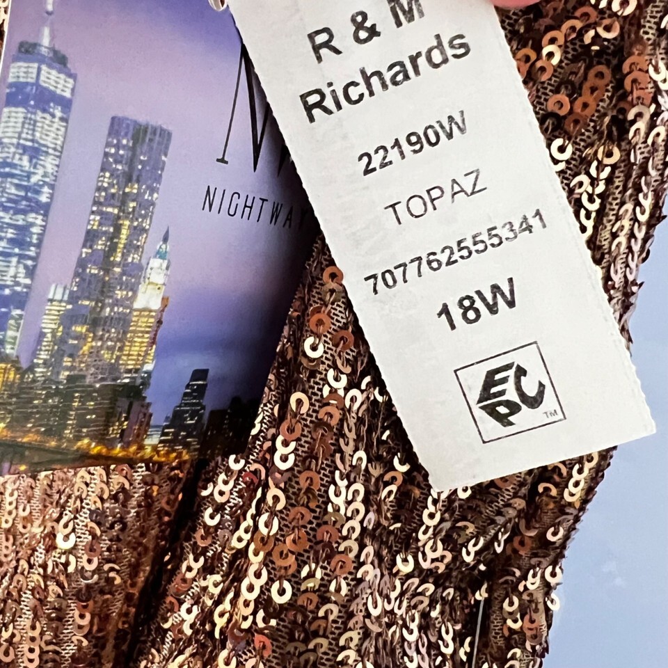 - R&M Richards Bronze 18W One Shoulder Sequin Sparkly Evening Gown NWT