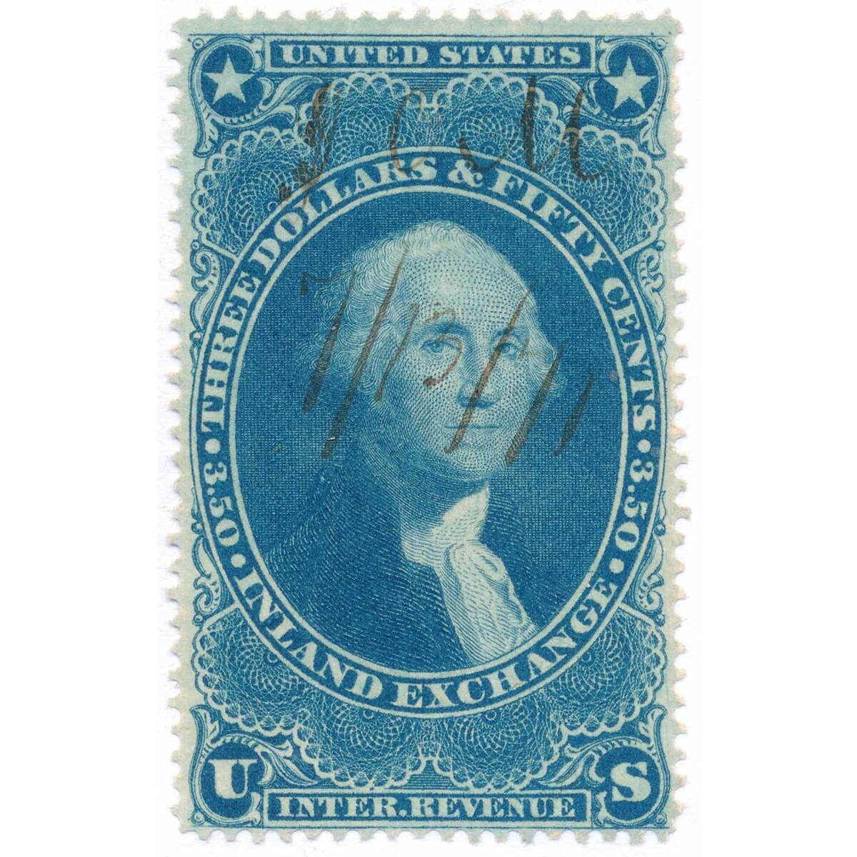 - R87c $3.50 First Issue, Washington, Inland Exchange, U.S. Internal Revenue, 1863