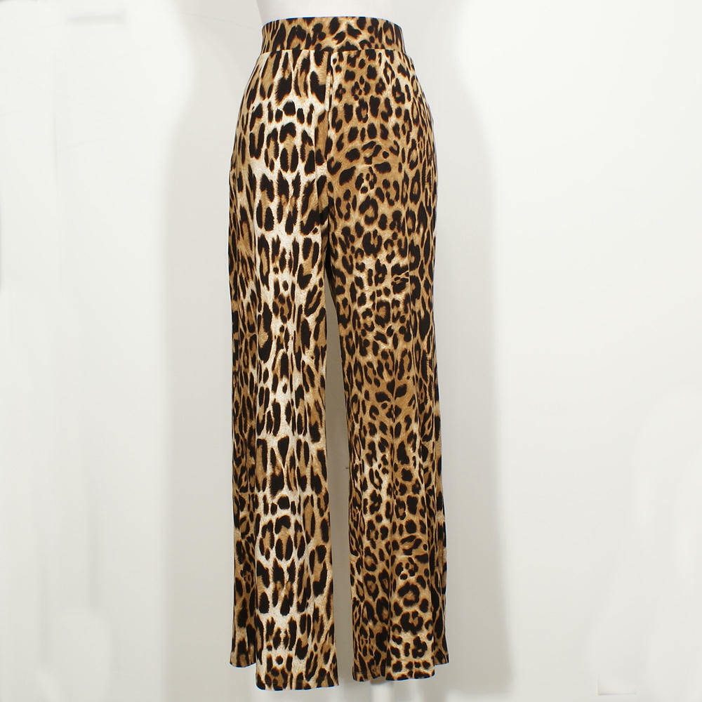 - RALPH LAUREN Brown Leopard Stretch Viscose Jersey Wide Pants 3X