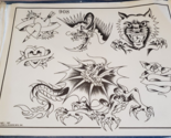 - RARE Vintage 1987 Spaulding Rogers Tattoo Flash Sheet Dragon Tiger Heart # 908