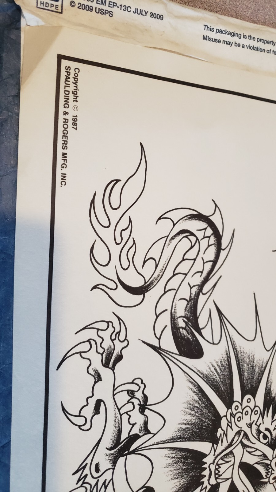 RARE Vintage 1987 Spaulding Rogers Tattoo Flash Sheet Dragon Tiger Heart # 908 This is an eye-catching, cool, set of Tattoo drawings here. ..... Got a bunch of vintage Tattoo stuff at an sale a bit ago. Condition - Please look at pictures. Overall, the artwork appears to be in good. Small fold or crease on top right and bottom left. These are not framed. There are no rips or tears. These are ready to be framed.... Dimensions - 13-7/8" by 10-7/8" Please ask questions if you have them. **Please checkout my other RARE and unique tattoo stuff I have listed...** I am in the Military Reserves and sometimes get called away for duty. thanks Will ship international.