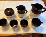 This is a rare vintage stoneware lot featuring a mid-century modern style with a glossy finish. The brown color and art pottery production technique add to its unique appeal. The set is original and from the late 20th century, making it a valuable addition to any collection of vintage dinnerware or decorative cookware. Perfect for all occasions, this vintage stoneware lot is a charming and stylish choice for those who appreciate the craftsmanship and aesthetics of the era.