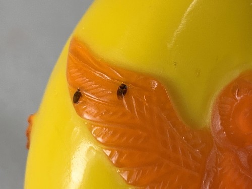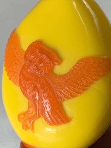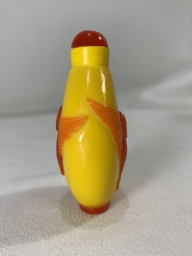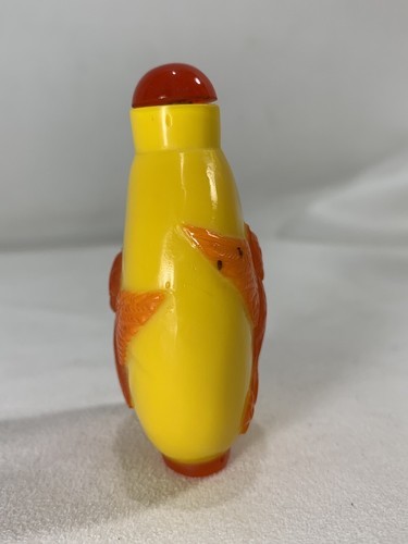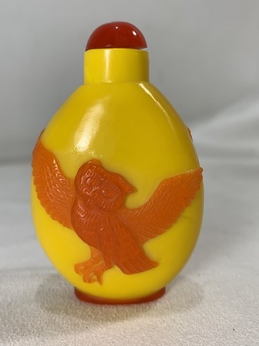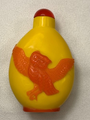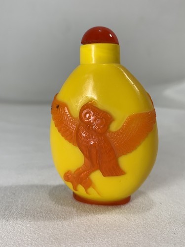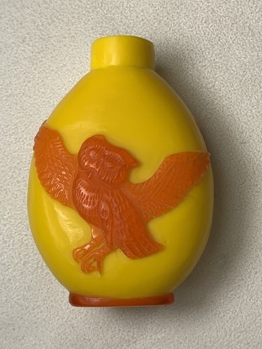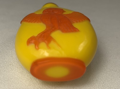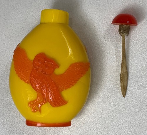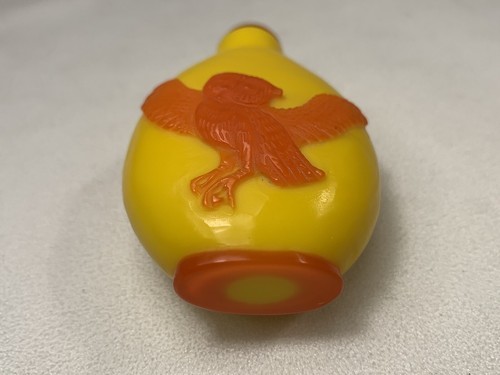 - RARE Vintage Yellow Orange Glass Snuff Bottle Jar - Opened Winged Owl 2 3/4"