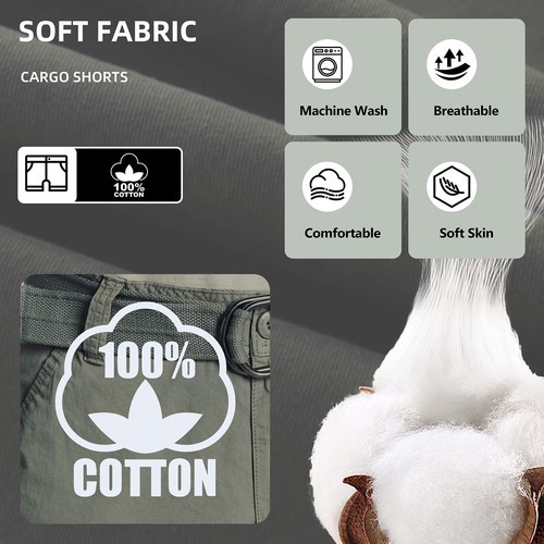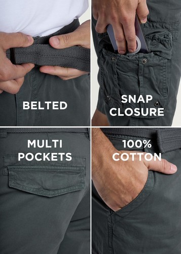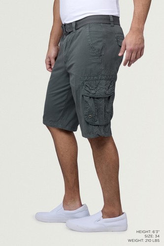 - RAW X Men's Belted Classic Fit 12.5" Cotton Cargo Shorts Gray-34W