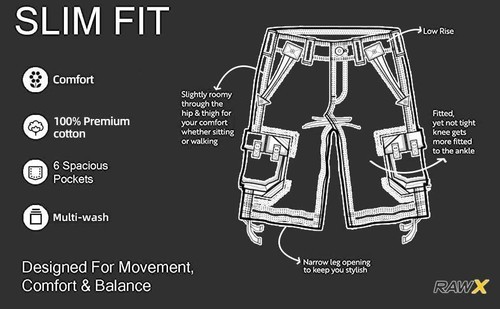 Multi pockets - 2 side slant hand pockets, 2 snap closure cargo pockets and 2 snap closure flap back pockets