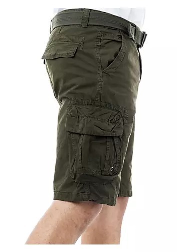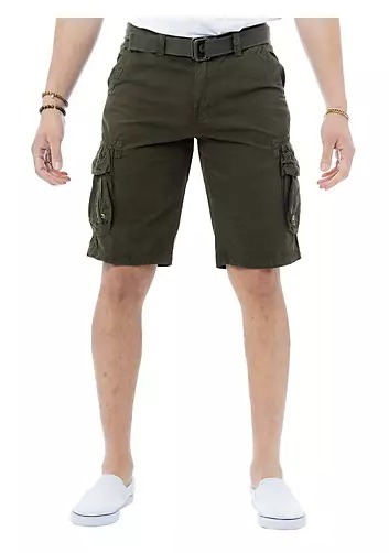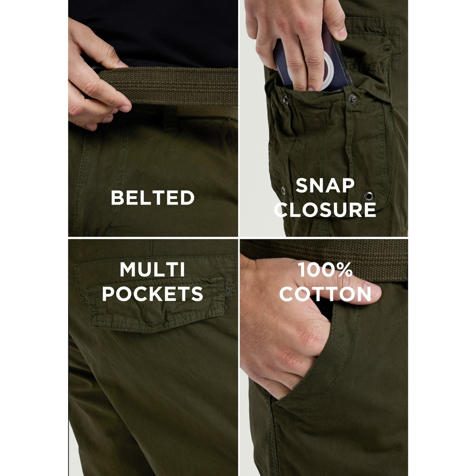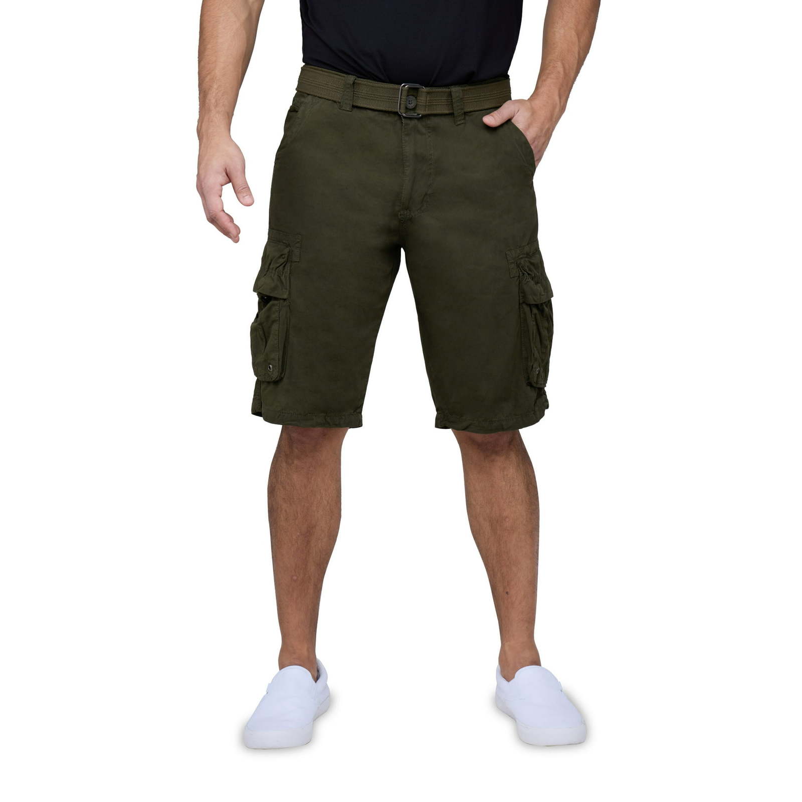 RAW X Men's Belted Classic Fit 12.5" Cotton Cargo Shorts Olive-52W