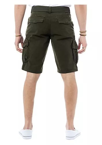- RAW X Men's Belted Classic Fit 12.5" Cotton Cargo Shorts Olive-52W