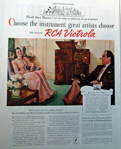 - RCA Victrola, 40's Full Page Color Illustration, 10 1/2" x 13 1/2" Print Ad. ...