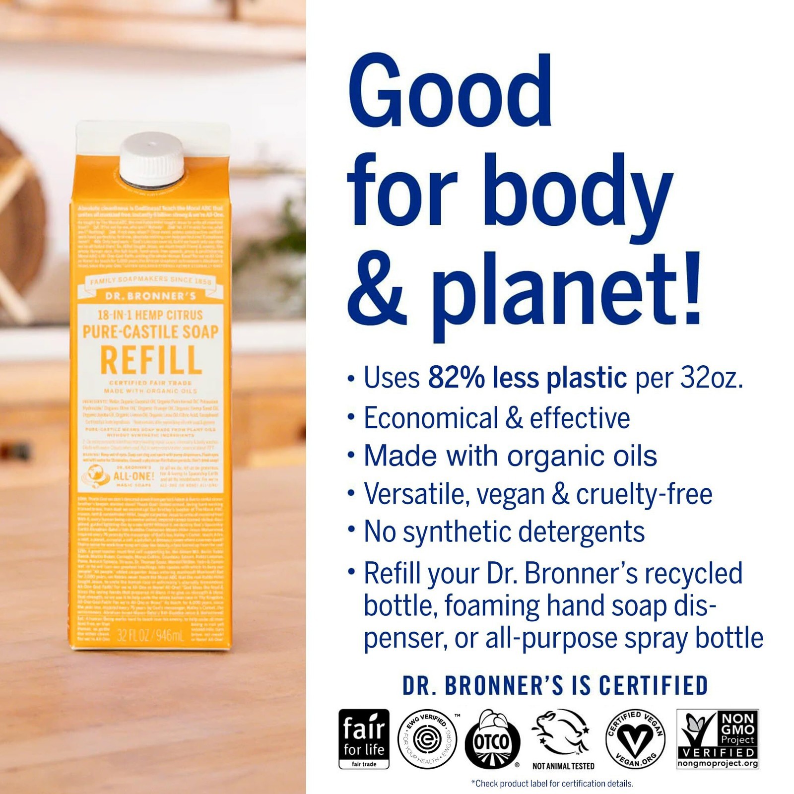 - READ Dr. Bronner's - Pure-Castile Liquid Soap Refill 18-in-1 Uses (32oz, Citrus)