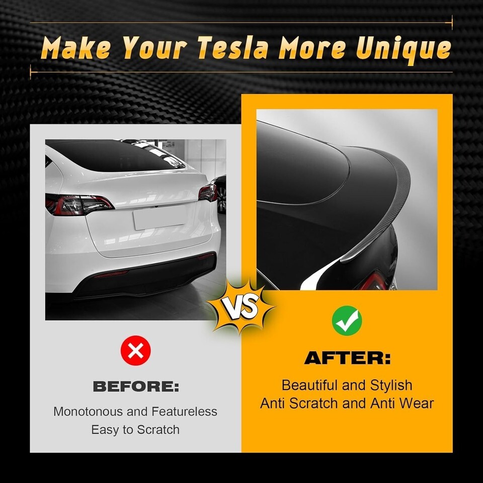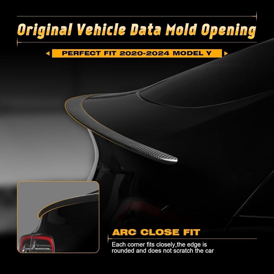 ?Real Carbon Fiber Spoiler?This Model Y trunk lip matte spoiler made of REAL CARBON FIBER instead of ABS plastic.Premium spoiler is made of 3K Toray dry carbon fiber and ultra-lightweight, with maximum durability, and quality.