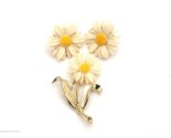 Vintage Sarah Coventry jewelry set- "Light 'n Bright" - a book piece( 1969) The Daisy is comprised of white plastic and has a painted yellow center. The stem and leaves are a light gold tone with a Florentine finish to the inside of the leaves. Brooch measures 2- 1/4" x 1-3/8 . Clip-on earrings are 1". Excellent condition.