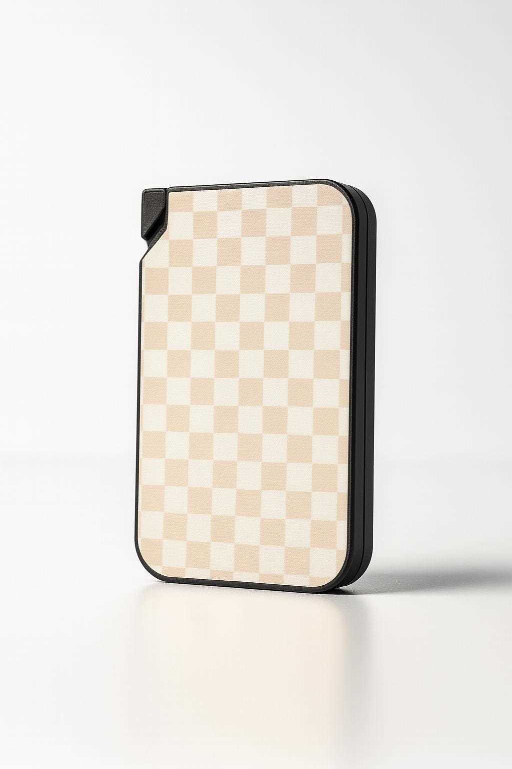 - RFID Aluminium Pop Up Wallet: Neutral Checkers Print