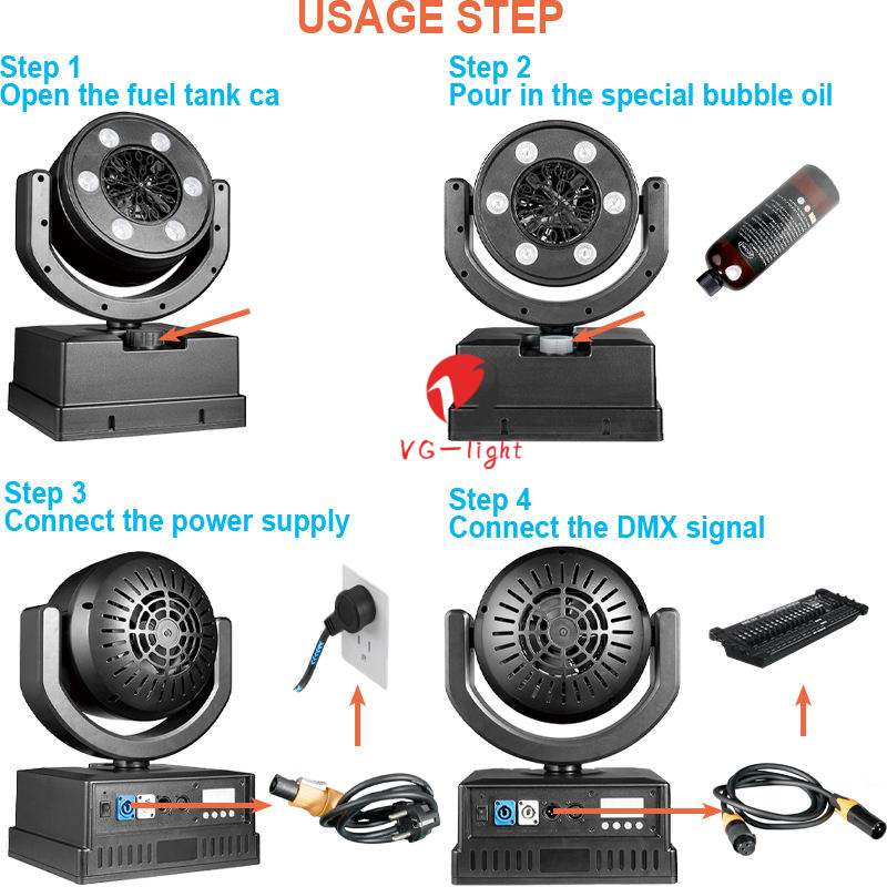 - RGB Y 4in1 LED Moving Head Bubble Machine with DMX Remote Stage Effect bubble