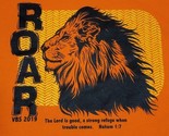 New Without Tags Port Company ROAR 2019 VBS Lion Head Christian Religious God Jesus Orange T-Shirt - Verse Nahum 1:7 - Men's Size Medium. 40" chest, 29" length. 100% cotton.