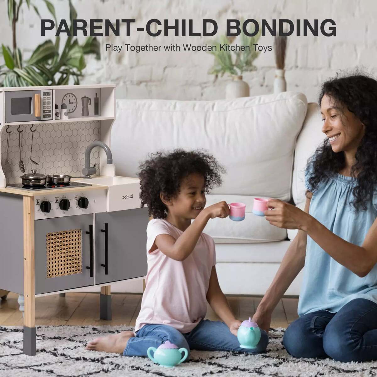 - ROBOTIME DIY Pretend Play Kitchen Cooking Toy Set Gift For Boys And Girls Gray