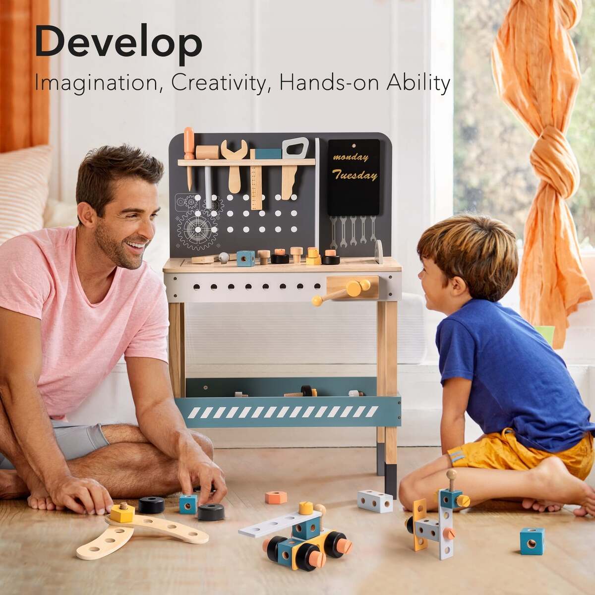 The wooden tool bench kit is an ideal beginner for kids,which contains various toy tool accessories that little kids desired!
