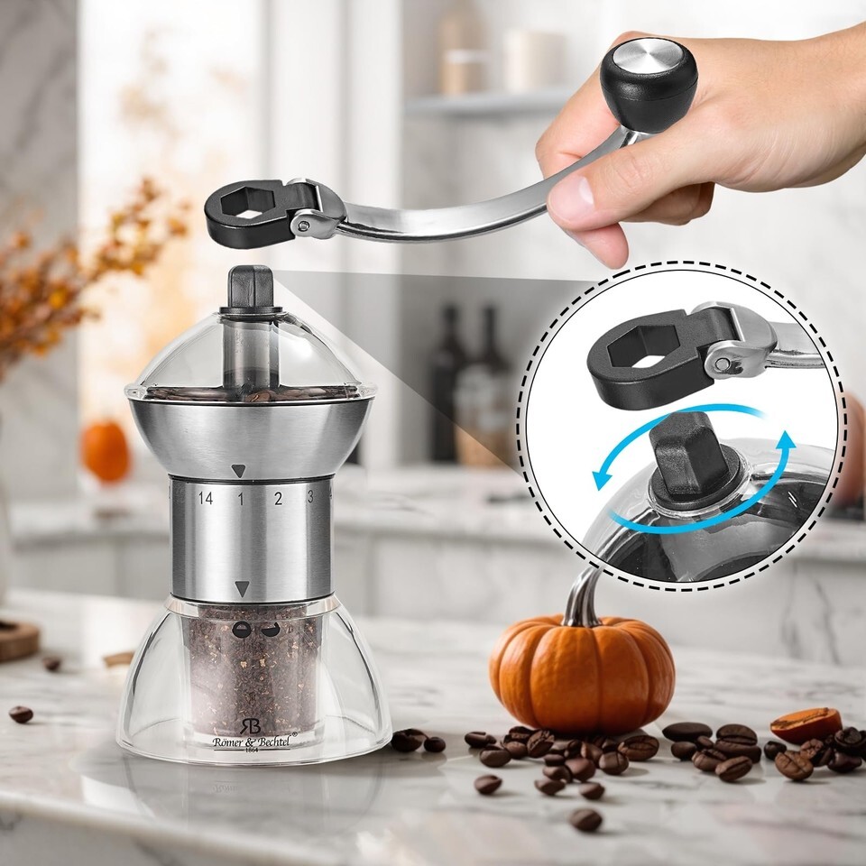 - ROMER & BECHTEL Manual Coffee Grinder 14 Adjustable Ceramic Burr Black