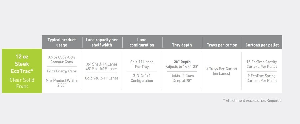 - RTC EcoTrac 12oz Sleek EcoTrac Gravity Feed Clear Solid Front (3 Lane & Single)