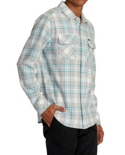 - RVCA Mens Woven Button Front Shirt That'll Work Flannel Silver Bleach 2XL