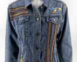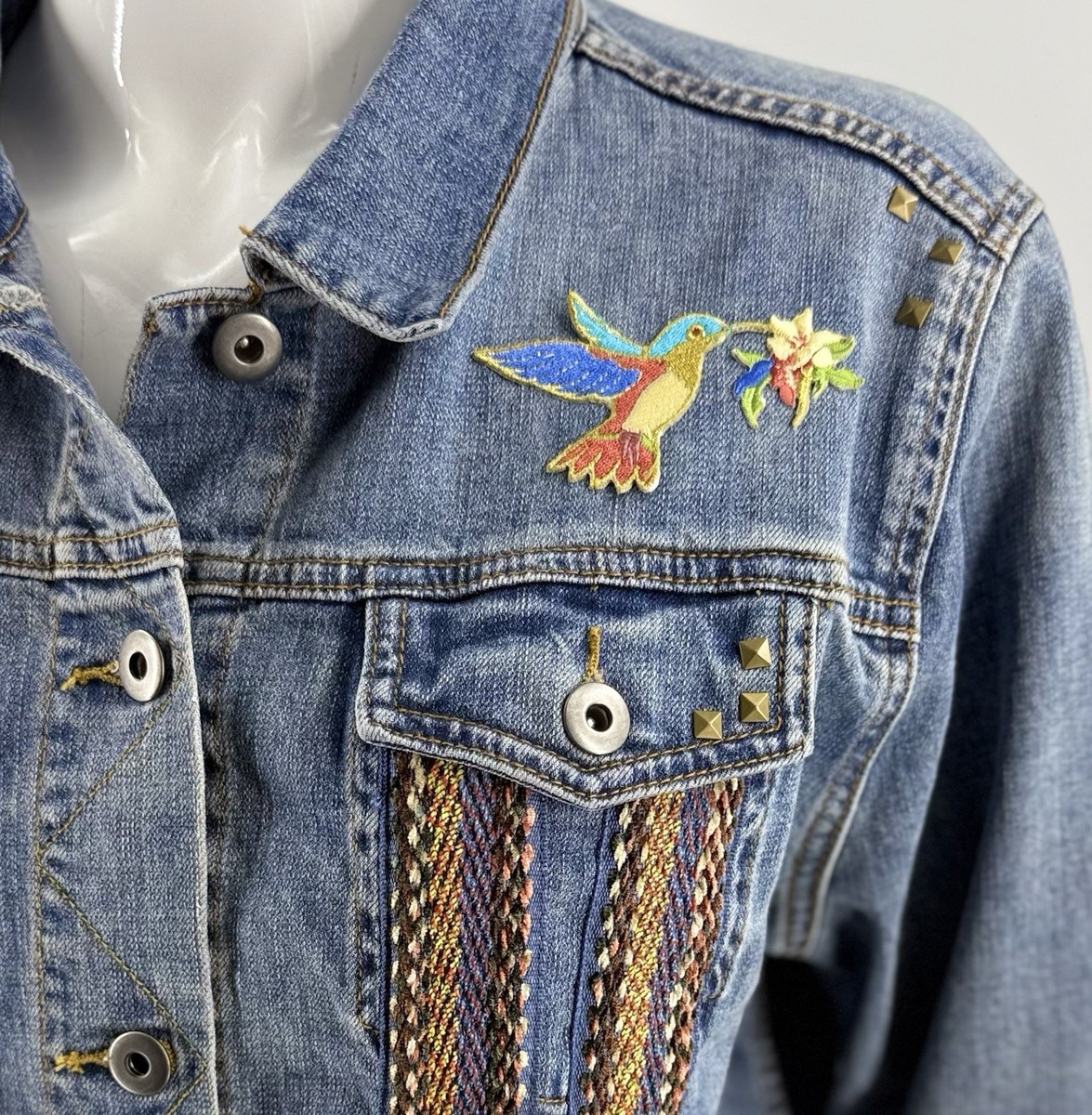 - RXB Womens Denim Jean Jacket Size Large Blue Embroidered Hummingbird Floral