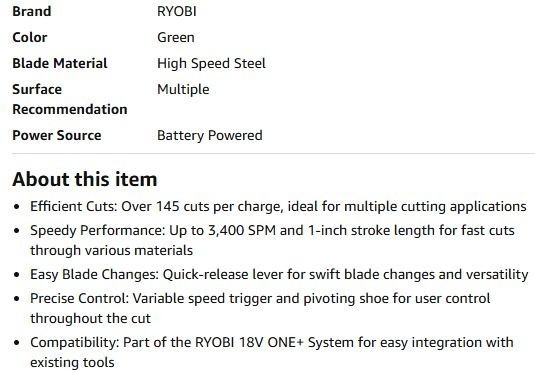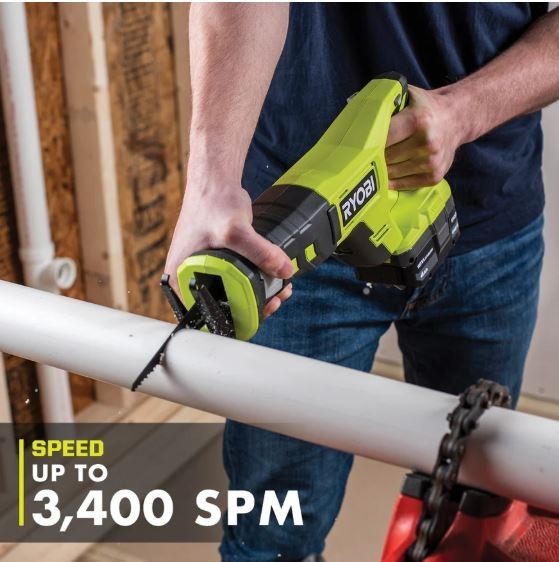 As part of the Ryobi 18V ONE+ system (300+ compatible tools), this reciprocating saw is a valuable addition to any existing battery platform.