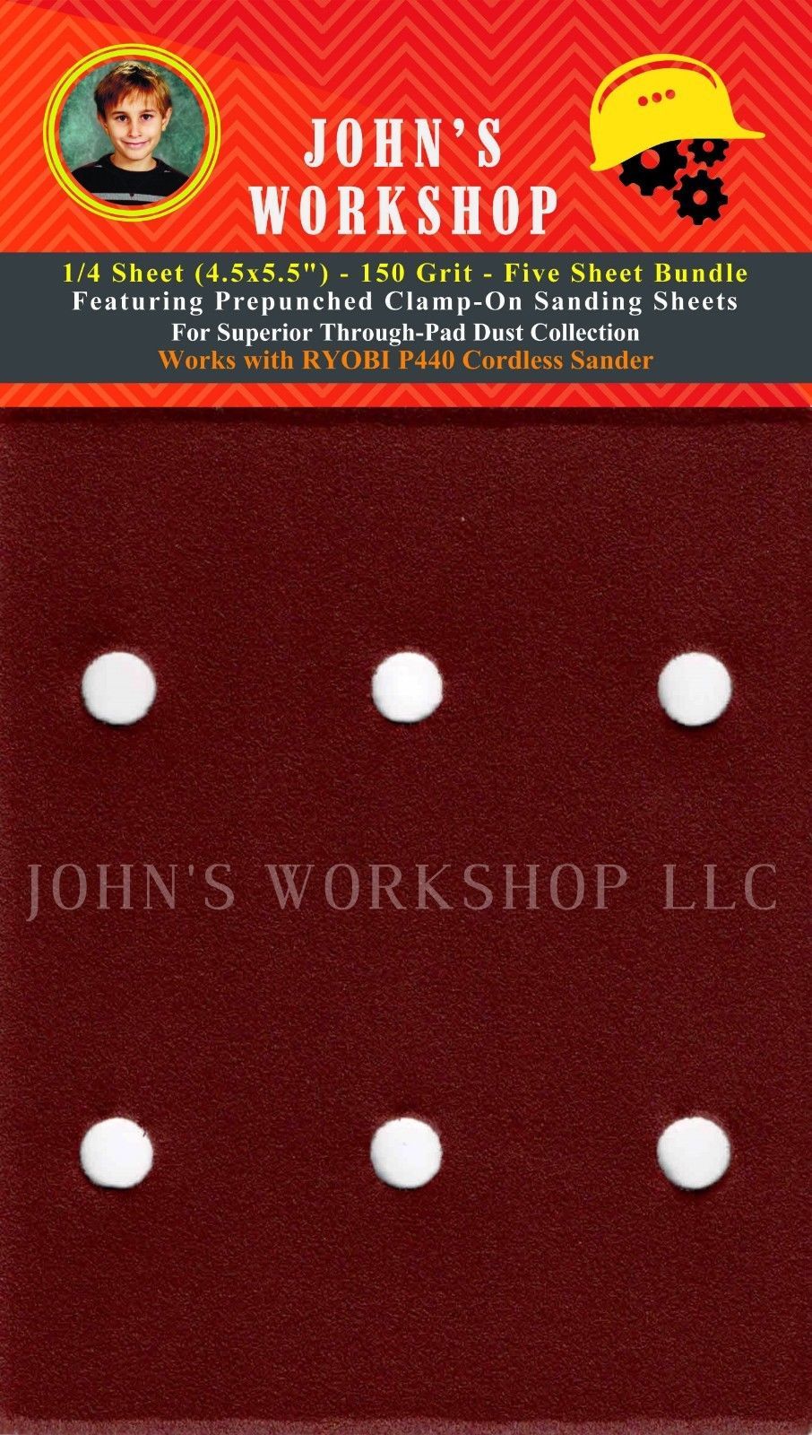 - RYOBI P440 Cordless - 1/4 Sheet - 150 Grit - PrePunched - 5 Sandpaper Bundle