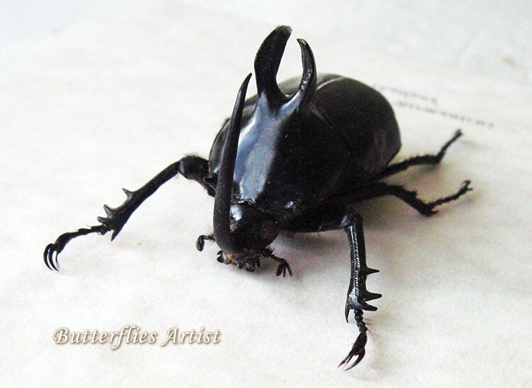 - Rabbit Ear Eupatorus Birmanicus RARE Real Beetle Entomology Double Glass Display