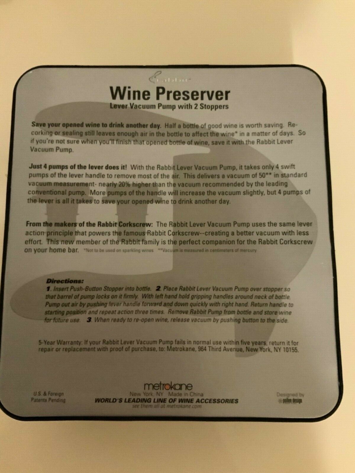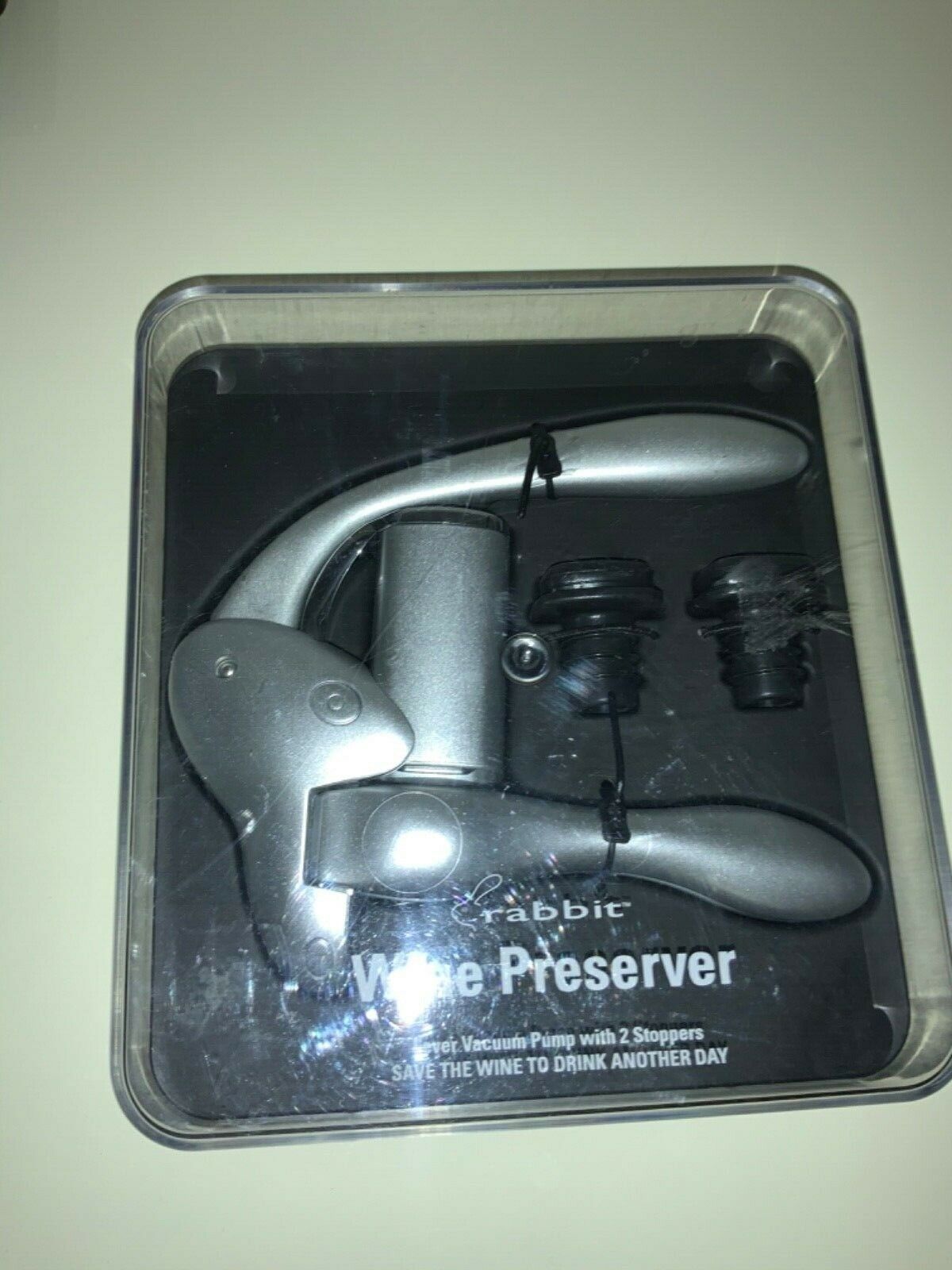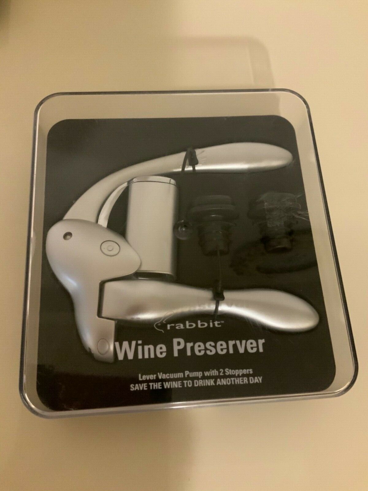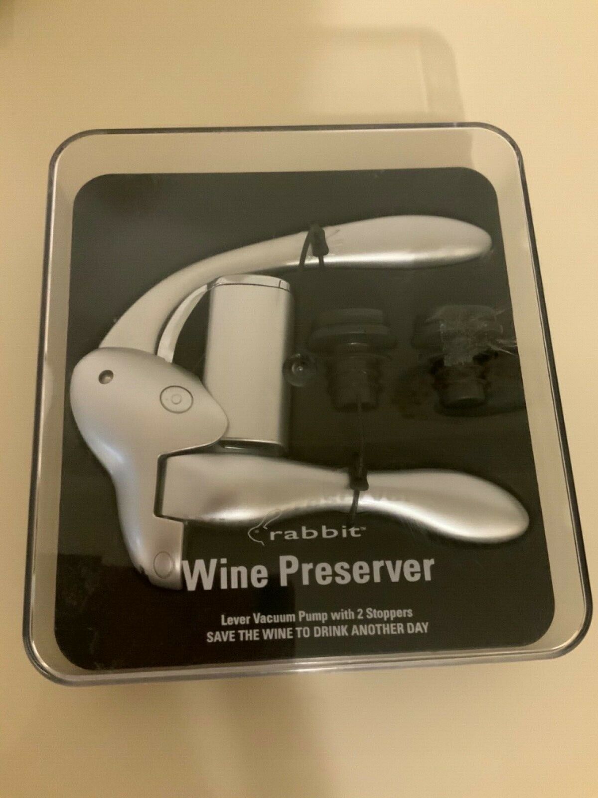 - Rabbit Wine Lever Vacuum Pump Wine Preserver, 2 stoppers, New in box.