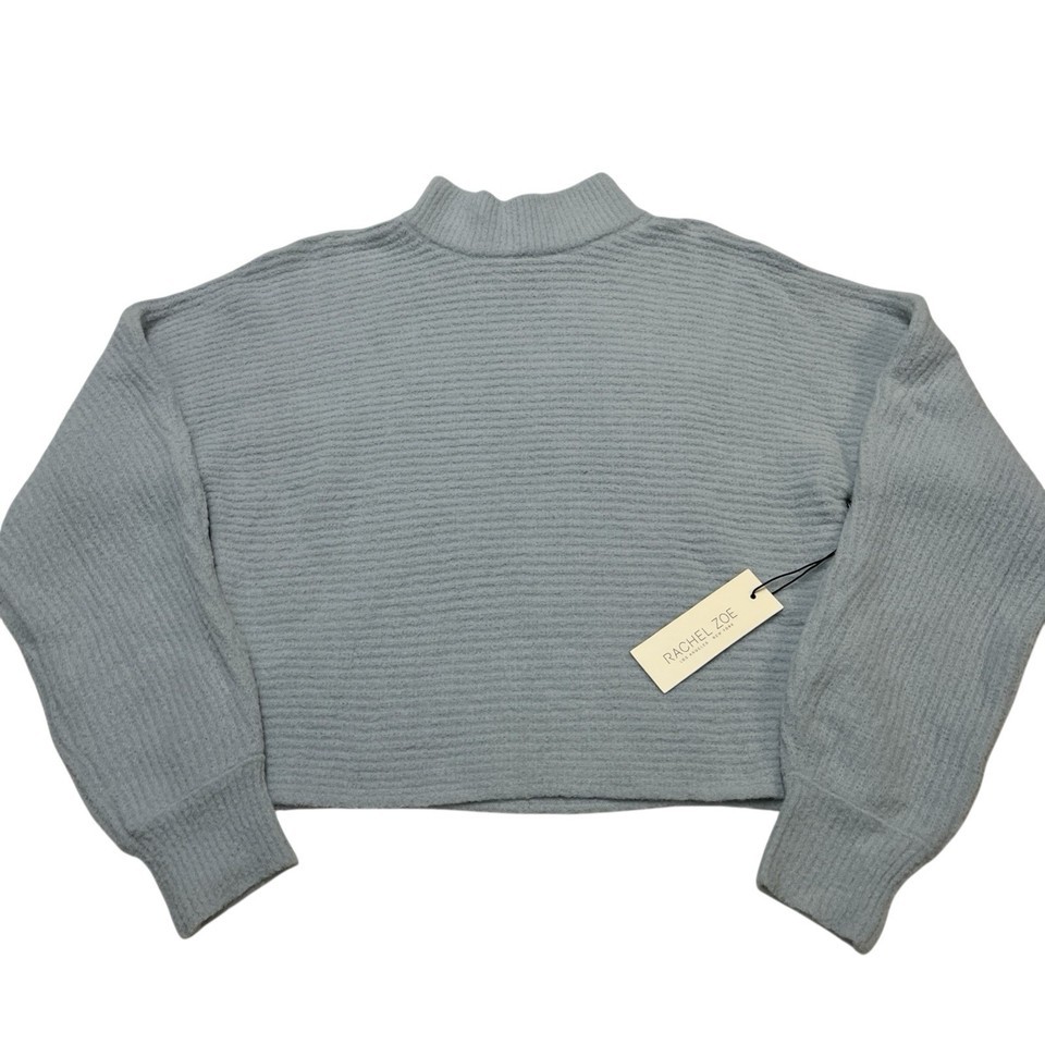 - Rachel Zoe Sweater Womens M Blue Ribbed Knit Cropped Mock Neck Soft Athleisure