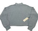 Rachel Zoe Sweater Womens M Blue Ribbed Knit Cropped Mock Neck Soft Athleisure