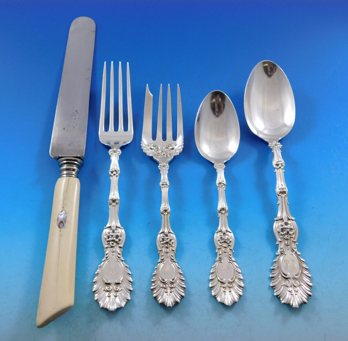 Rare Radiant by Whiting Sterling Silver Flatware set - 63 pieces (including 12 Celluloid handle Knives). This set includes: