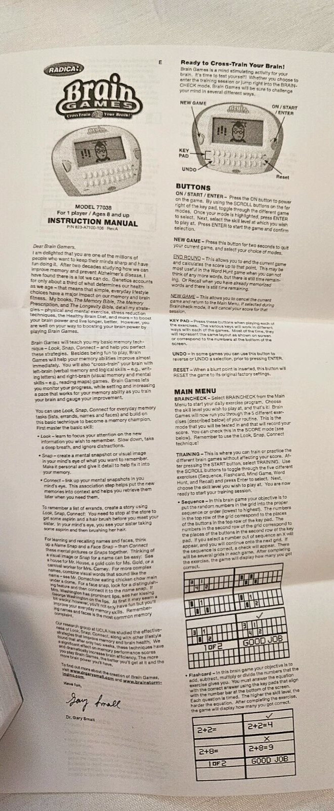 - Radica Brain Games Electronic Handheld Crosstrain Your Brain Memory Skills FUN!