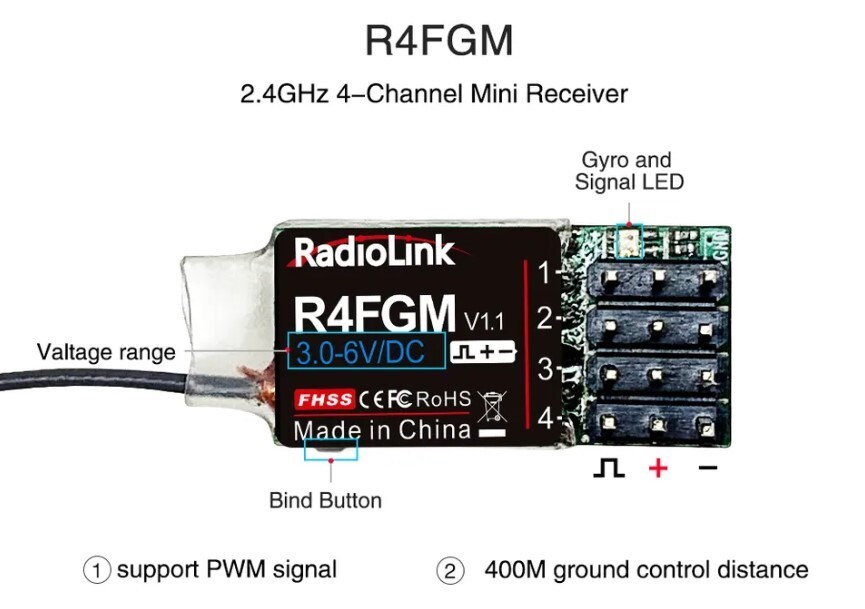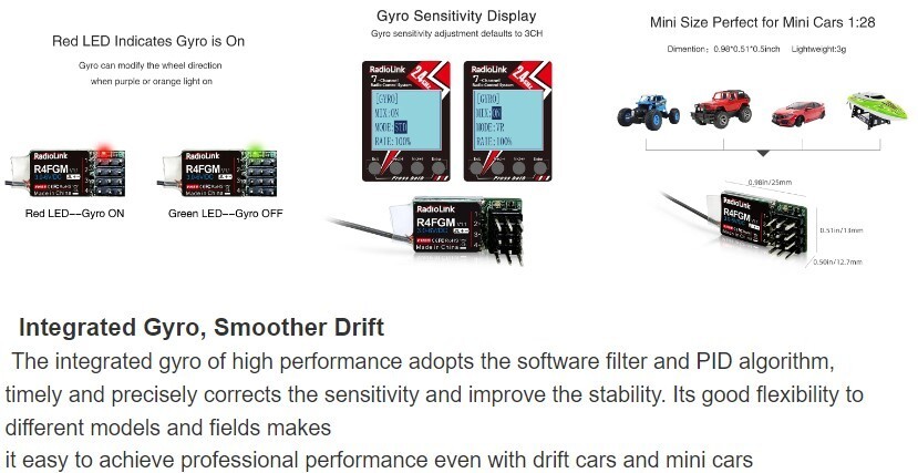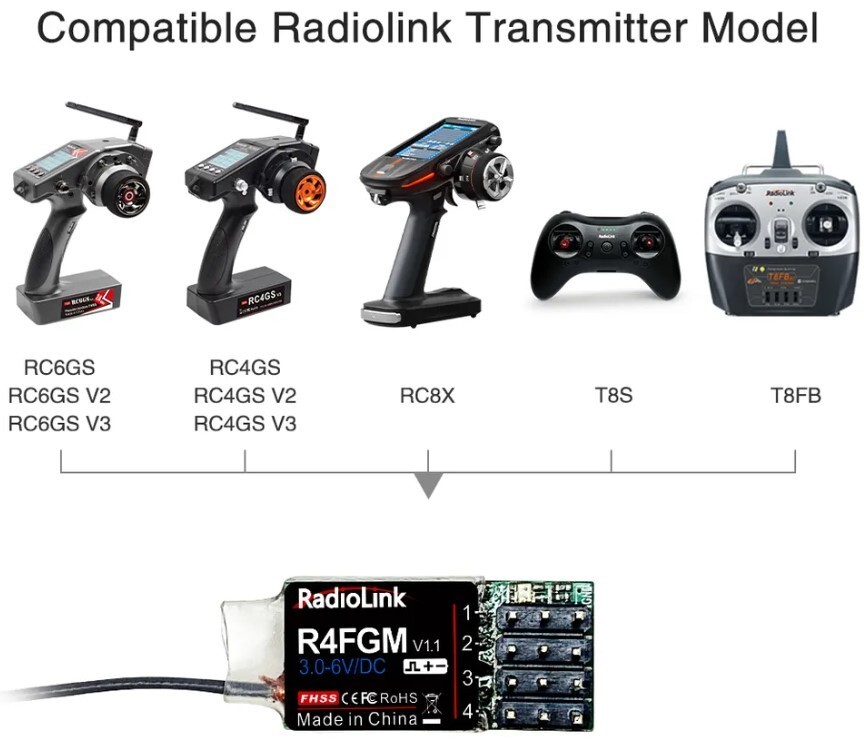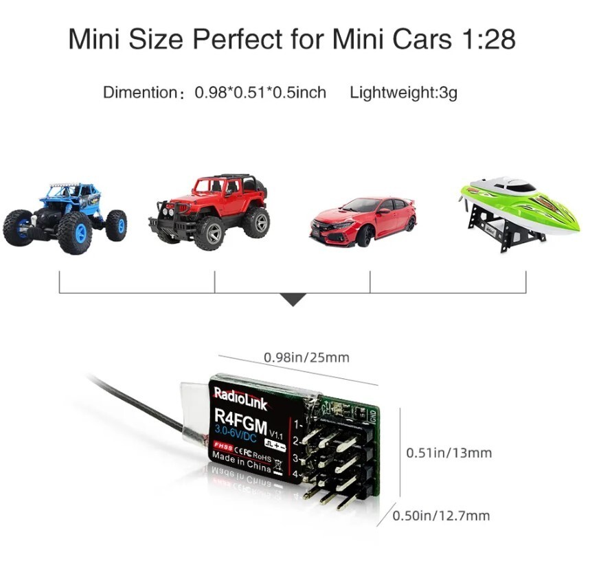 - RadioLink R4FGM Receivers For Mini RC Cars, Mini RC Crawler 1/24 1/28 RC Boats