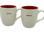 - Rae Dunn "Merry" & "Wish" Coffee Mugs Holiday Red Interior