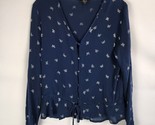 - Rails Top Womens SZ MED Blue Navy White Butterfly Print Beaux Button Down Blouse