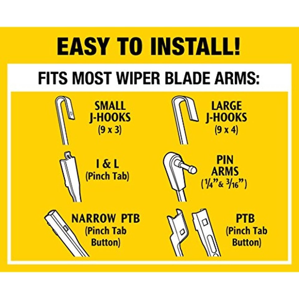 Now even easier to install - new and improved pre-installed universal adaptor installs within minutes and fits 96 percent of all vehicles. An aerodynamic spoiler prevents wind lift and delivers a quiet wipe