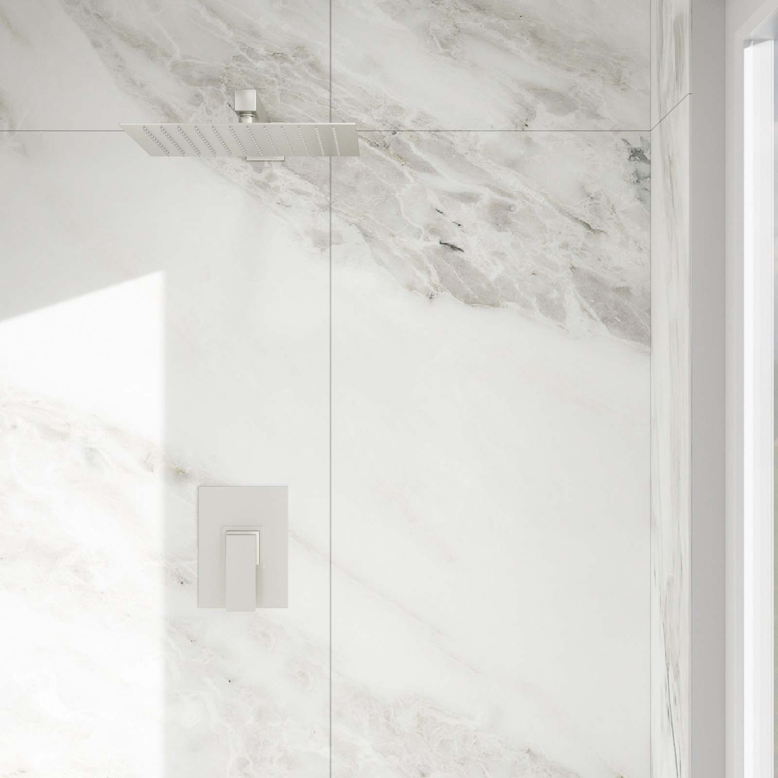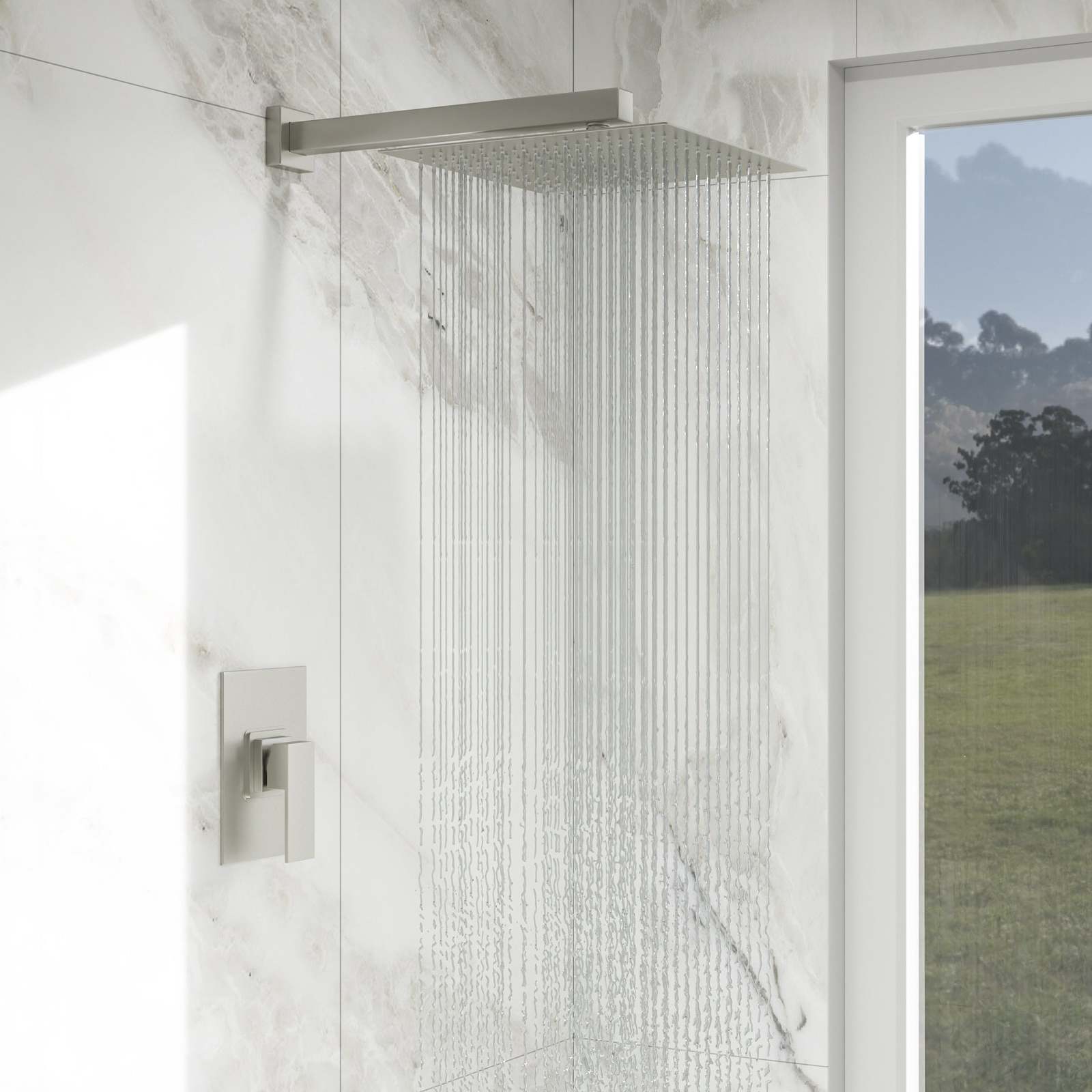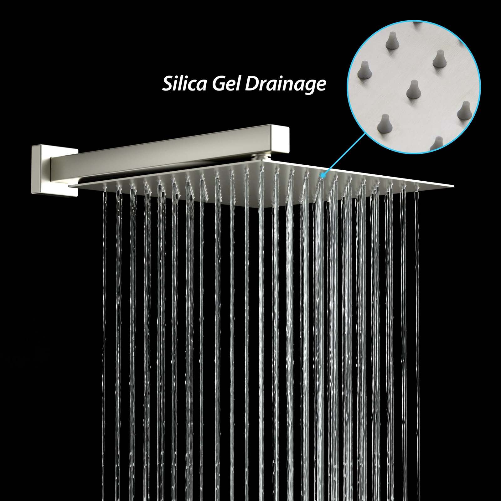 {Rainfall Shower Head}Our ultra-thin overhead rainfall shower head offers extensive coverage, providing a soothing downpour shower experience with 360 adjustability.