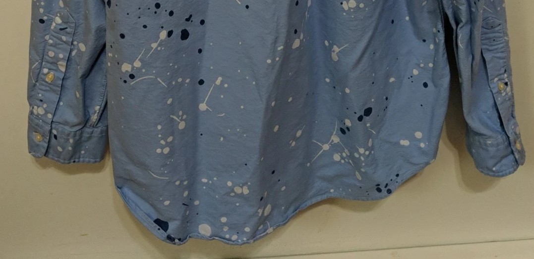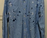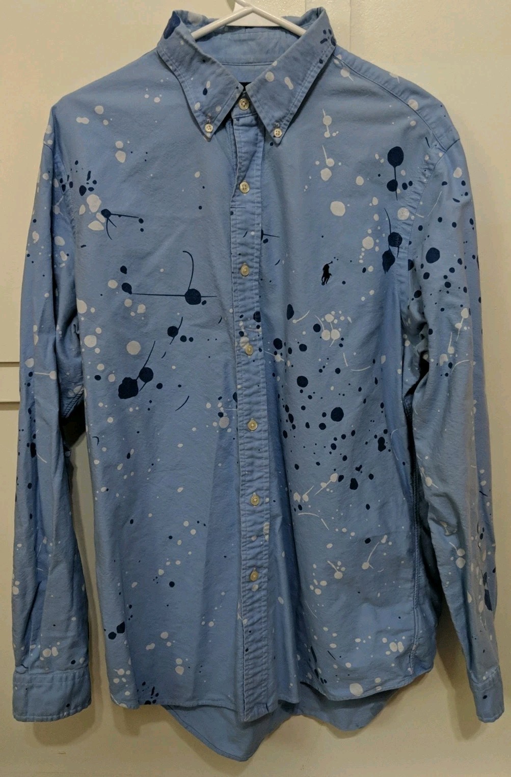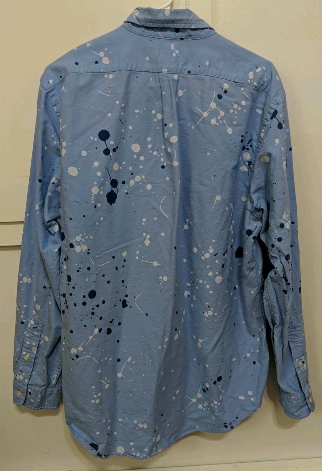 - Ralph Lauren Blue Long Sleeve Button Down Shirt Paint Splatter Mens Large