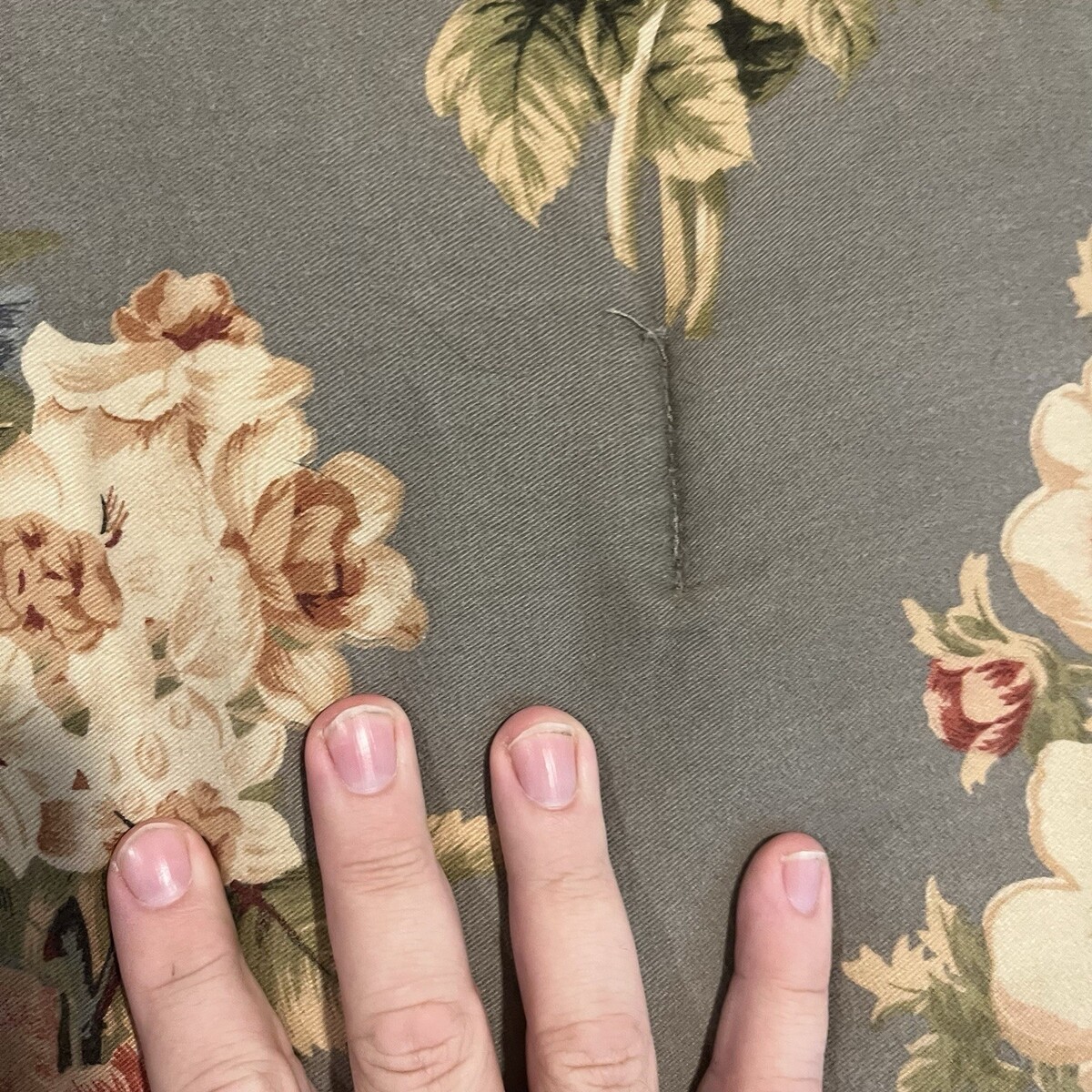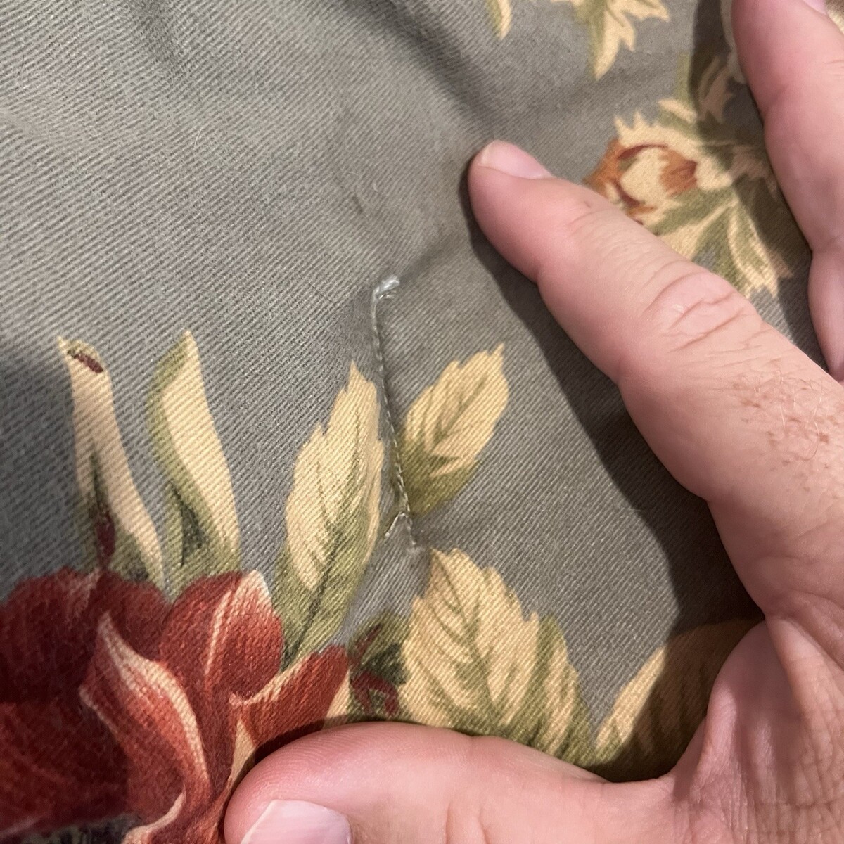 See photos for stitched holes. Some fading noted.