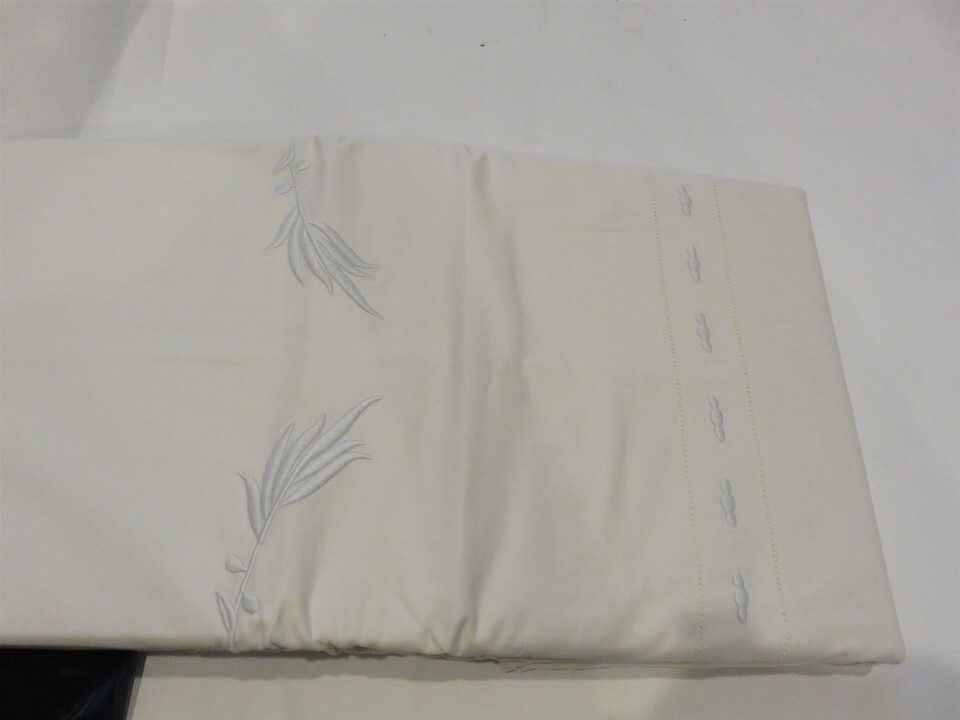 - duvet cover and shams have an embroidered face panel, with solid sateen back