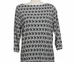A refined geometric print updates a soft jersey top in a feminine cut with a bateau neckline and three-quarter sleeves.