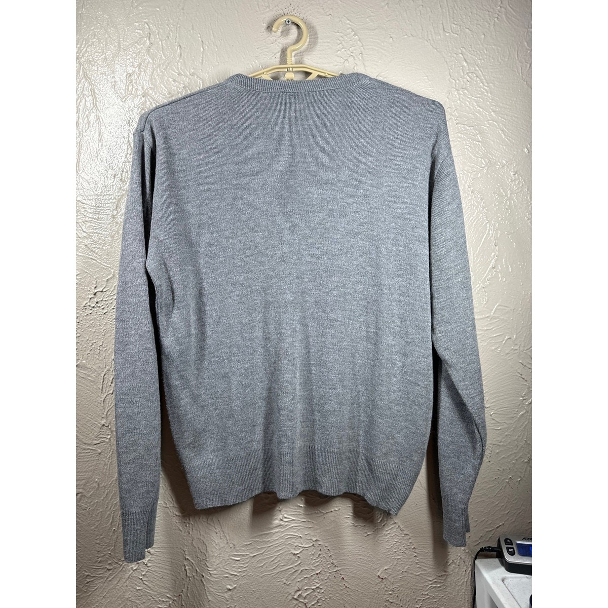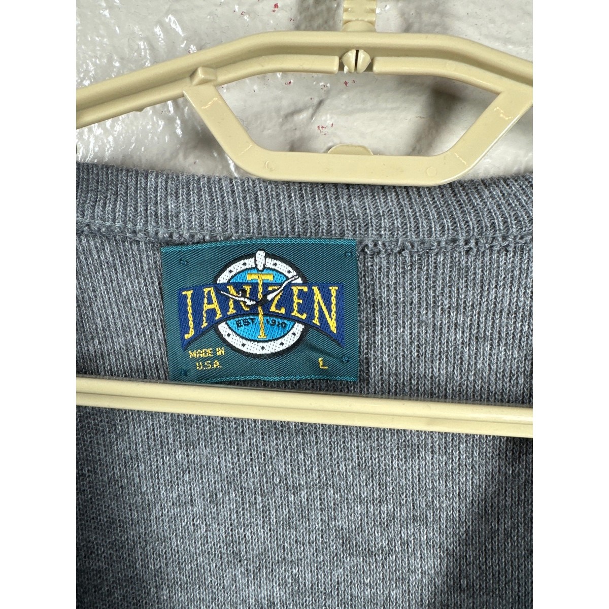 Jantzen Knit Sweater Mens Gray Long Sleeve V-Neck Made In USA size largeThis item has been cleaned pers used clothing policy.
