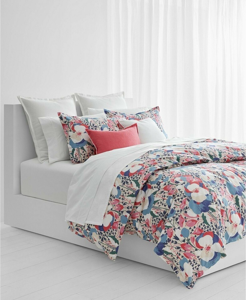 - Woven from soft, breathable 200-thread-count cotton percale, this duvet cover's colorful floral pattern will add whimsical cheer to your bedroom.